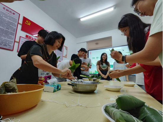 活动设置了端午节知识普及、端午知识竞答、包粽子大赛等环节。在主持人的带领下,大家共同学习了端午节的由来,不同地区习俗及端午文化内涵等方面。在端午传统文化知识问答环节,师生答题热情高昂,积极抢答,趣味十足。