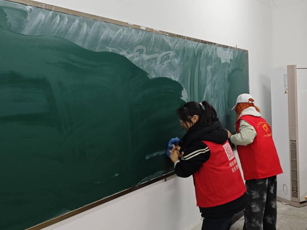 宣誓仪式刚结束,各志愿服务队便如离弦之箭,奔赴各自的“战场”。智汇科技打响了“码到成功,清尘先行”的校内文明创建战。他们走进智慧大楼威廉希尔WilliamHill官方网站机房,键盘间的积尘、桌椅下的杂物,都在志愿者们细致的清扫整理下无所遁形。不久,焕然一新的机房便以整洁的面貌迎接同学们的到来,为知识的汲取打造了舒适的环境。
