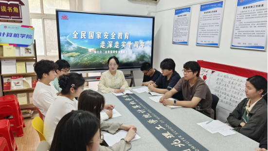 在 “芯光” 驿站开展的学习交流研讨活动同样热烈非凡。辅导员陈玲老师深入解读国家安全知识,结合实际案例,让法规条文变得通俗易懂。随后,师生共同观看 “全民国家安全教育,走深走实十周年” 宣传片,通过影像资料直观感受国家安全建设的重要性与成就,现场交流气氛活跃,师生们各抒己见,分享学习心得。