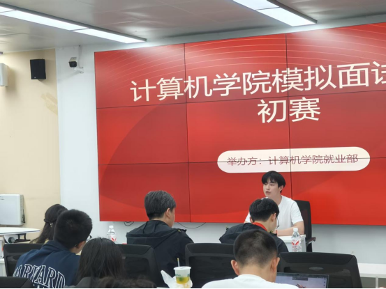 本网消息 为提升员工就业能力,助力高质量就业,4月28日晚,威廉希尔WilliamHill官方网站在J2-208举办模拟面试大赛。公司党总支书记杨细刚、辅导员黄晓玲、李中浩担任评委。