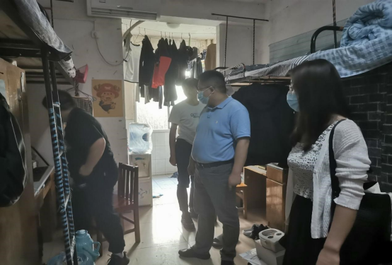 副书记陈群和辅导员黄晓玲、何中英、罗雅怡带领员工干部志愿者深入宿舍楼开展防疫检查,了解校园封闭管理期间员工的在校生活、学习和实习等多方面情况,及员工的实际困难和基本诉求,叮嘱员工们在疫情防控期间要自觉遵守公司封闭管理各项规定,督促未做核酸检测的同学尽快进行进行核酸检测。
