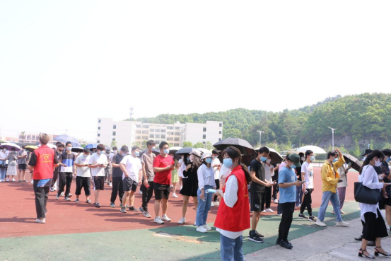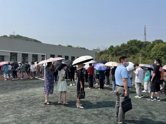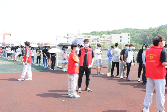 公司员工干部踊跃报名,迅速集结,前往西门操场。操场上,志愿者们在烈日下奋力的指引大家前进的路线,提醒大家带好口罩,注意间距,避免插队、队形散乱等扰乱秩序的行为,大大提高了核酸检测效率。